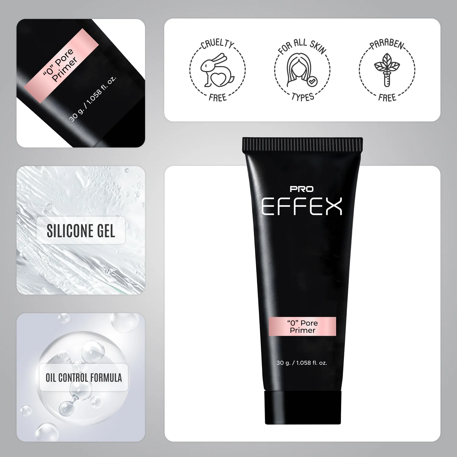 Achieve flawless, poreless skin with Pro Effex Zero Pore Primer. Designed to minimize the appearance of pores, this innovative primer provides a smooth base for your makeup. Its unique formula ensures long-lasting performance, a mattifying effect, and skin-nourishing benefits, making it the ultimate solution for creating a flawless, radiant complexion.