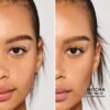 After applying your foundation or on bare skin, apply to areas of your face you want to contour such as the hollows of your cheeks, jawline, and sides of your nose. Blend with fingers or with Portable Contour & Concealer Brush 150.