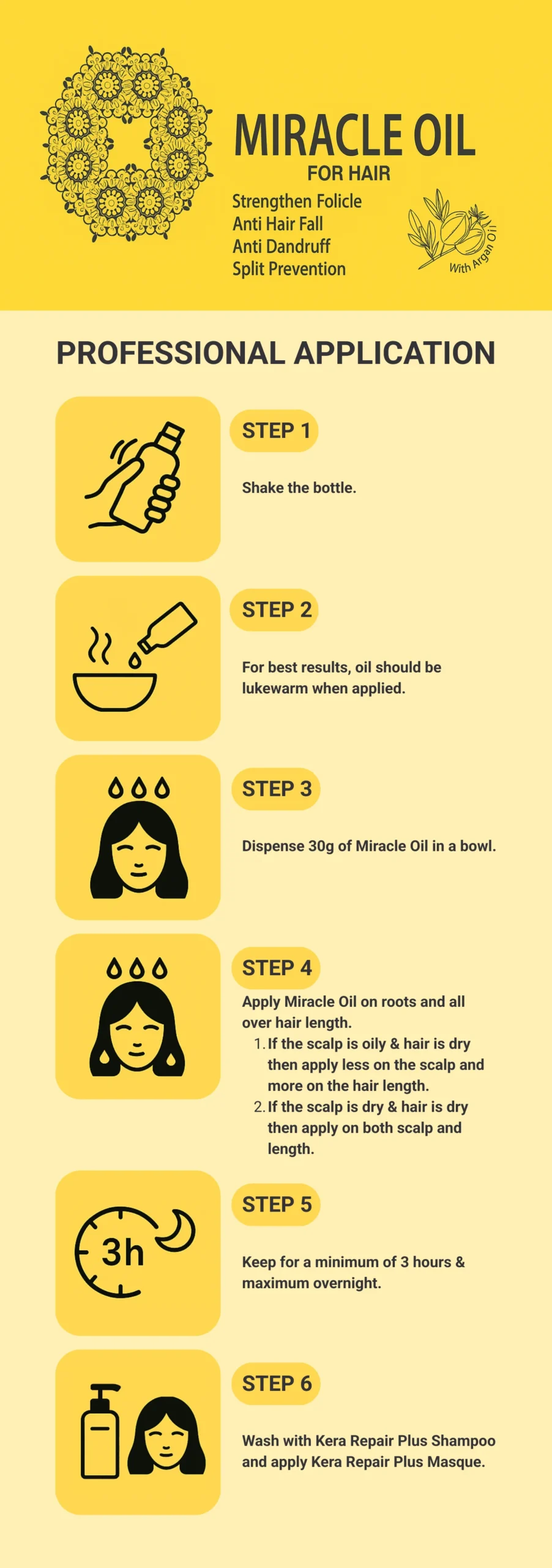 - If the scalp is oily & hair is dry then apply less on the scalp and more on the hair length.