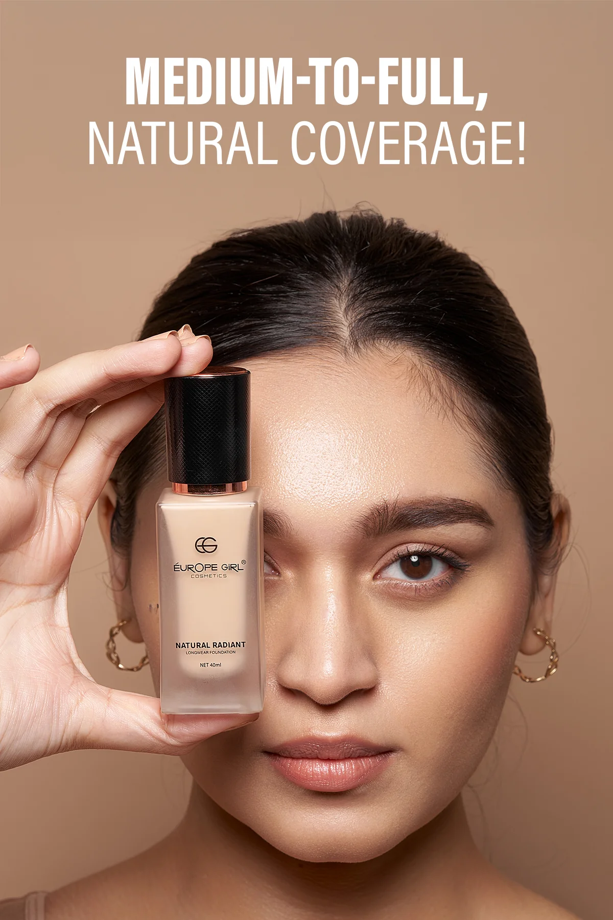Introducing Éurope Girl Natural Radiance Foundation – a revolutionary foundation that combines strength with a lightweight feel, offering a flawless finish that lasts all day. This high-coverage foundation is unlike anything else, providing an untraceable, natural-looking finish with long-lasting wear. It’s breathable, fade-resistant, and helps to smooth and improve the look of your skin instantly and over time. With the ability to match your skin tone perfectly, it offers a seamless, natural finish that stays put