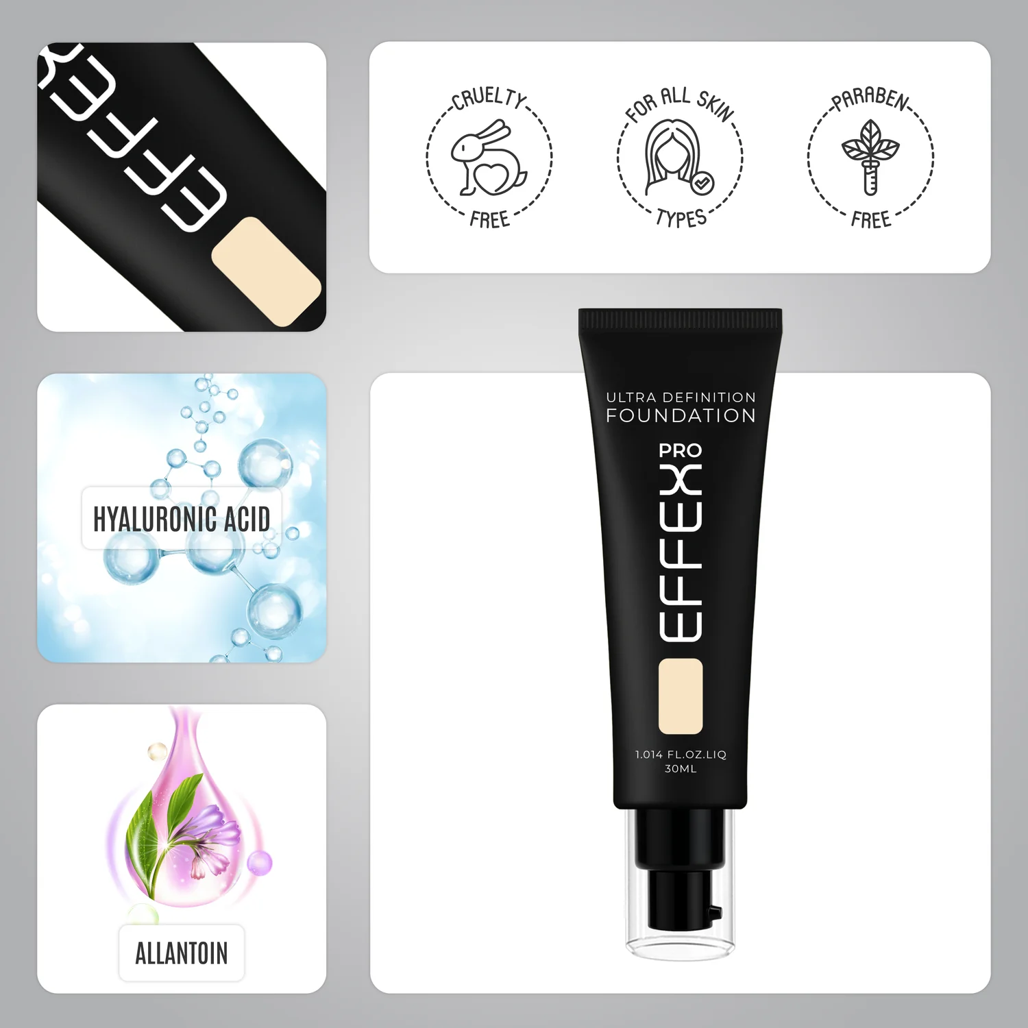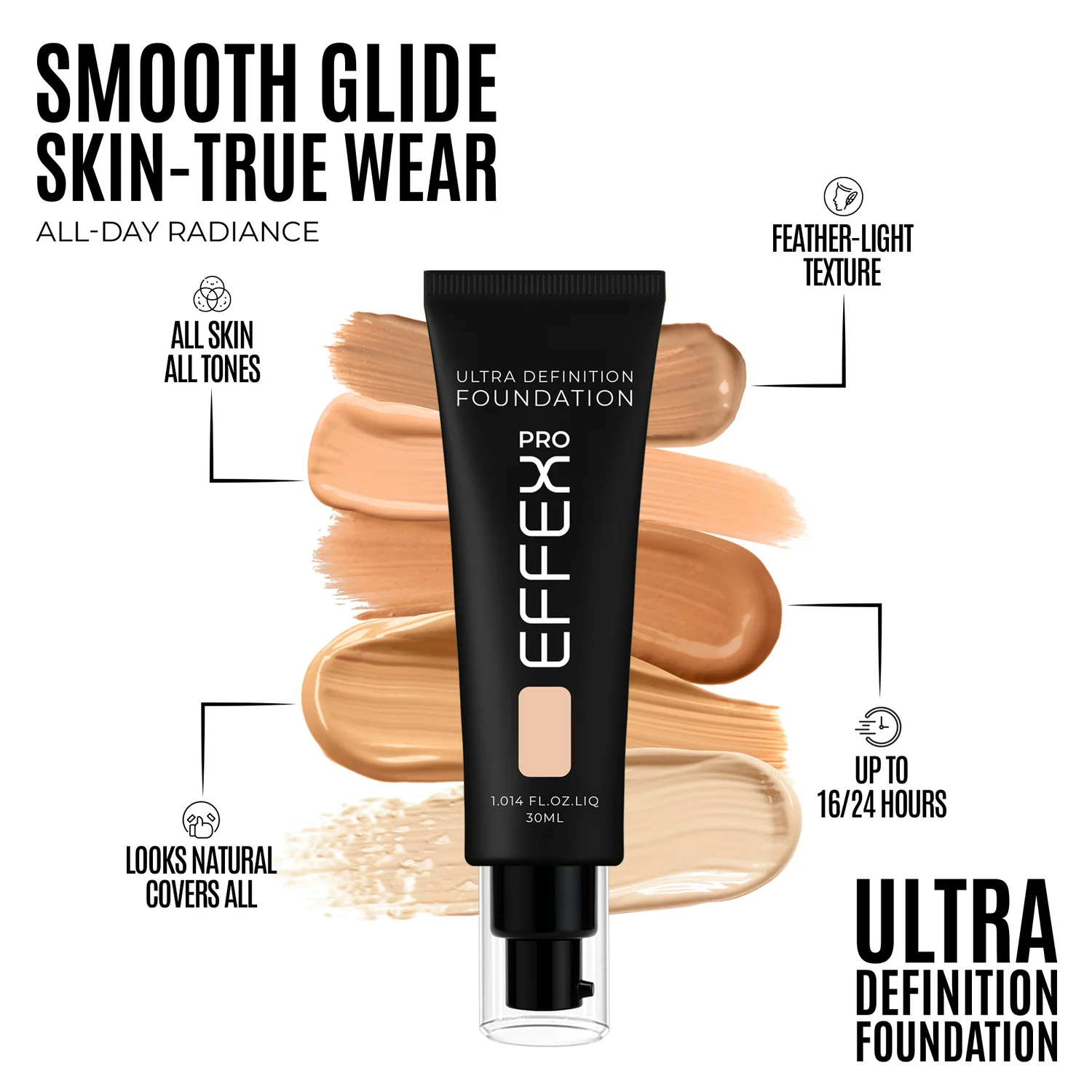 Experience perfection in every drop. The Ultra Definition Foundation is expertly crafted for the diverse beauty of Indian skin tones, delivering a premium high-definition, photo-ready finish that looks flawless both on camera and in everyday life.